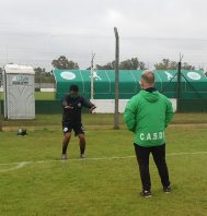 A lo lejos en paralelo sobre la línea lateral derecha, en un circuito de obstáculos el Entrenador de Arqueros Jonathan Zarza junto a Marcos Jara, Cristian Cottone y el Juvenil Alejandro Ibarra prolongaron tareas de reflejo y contención.