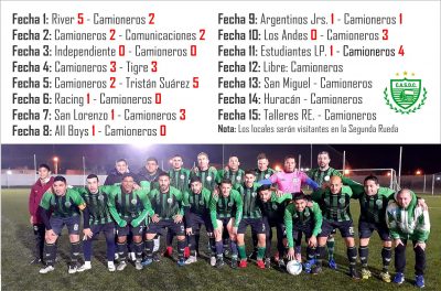 Gran triunfo de CAMIONEROS en la Ciudad Deportiva de Estudiantes de la Plata ubicada en City Bell. Con goles de Mauro Morales, Jorge Nazar y Javier Morel x 2, el conjunto que dirige Anibal Ortíz y Hugo Echeverría se trajeron una victoria resonante.