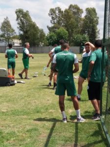 Finalmente en ultimo termino para cerrar la práctica el conjunto verde realizó cuatro pasadas en velocidad a lo largo del campo de juego, cronometradas por Marcelo Fernández.