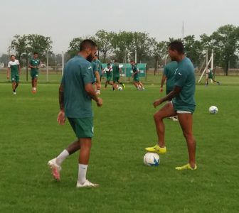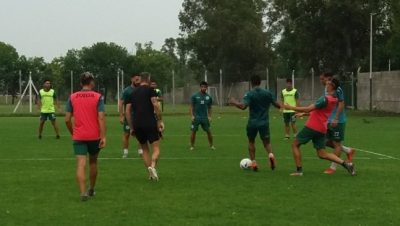 Tras una hora exacta el plantel se trasladó a la cancha N°3, allí Matias Fischer (Único miembro del cuerpo táctico disponible) señalo al equipo como se iba a llevar a cabo la práctica.
