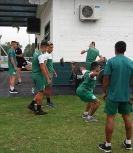 Establecido en el vestuario central el plantel realizó inicialmente su apertura de elongacion y estiramiento, todo para luego avanzar con los trabajos de fuerza, coordinación y resistencia.