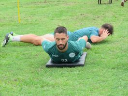 El cuerpo técnico (Prieto, Fischer y Ramos) estában el banco, atentos y dialogando. Luego, la elongación final y descanso previo al doble turno de entrenamiento por la tarde donde se aplicarán al trabajo con pelota. El Kinesiólogo y el médico también siguieron muy de cerca los movimientos de todos y fueron puntualizando acerca del esfuerzo y el cuidado (el plantel realiza dos exámenes mensuales sobre su estado clínico).