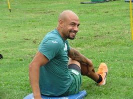 Mañana nublada (como fue costumbre en la última semana), matizada con la lluvia del Mediodía. Pero a pesar del clima y sus complicaciones, el Camión no frena. Es así que el plantel del Verde puso primera y arrancó a todo motor. 8:00 AM y los jugadores ya se habían reunido en el gimnasio, bajo las órdenes de los PF. Ejercicios de elongación, previos a la parte de musculatura y pesas.