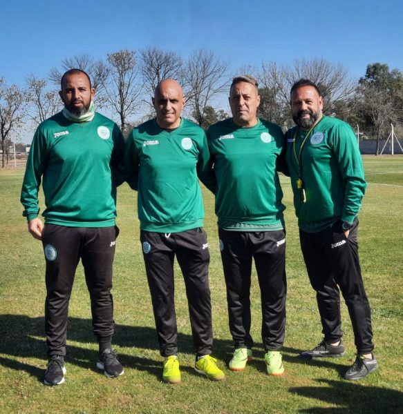 Garabello junto a su grupo de trabajo conformado por el ayudante de campo Pablo Olguin, el Preparador Físico Walter Soria y al entrenador de arqueros Jonathan Zarza, se presentaron con el equipo principal.