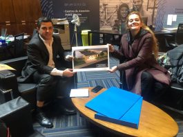 Jimena Gallardo, Presidenta de la Asociacion Civil NoMasHambre y el Arquitecto Ricardo Delugan, Subsecretario de Desarrollo Urbano, Ambiente y Energía de Las Heras Mendoza, se reunieron con Bancos Nacionales e internacionales, buscan financiación para el Primer Centro de Gestión Ambiental en el Municipio de Las Heras Mendoza.