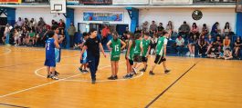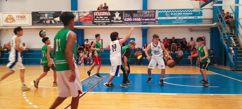 Jugando 5 cuartos de 3vs.3 que para darle la posibilidad a los mas chiquitos a familiarizarse con el juego.