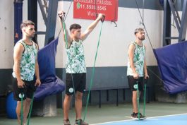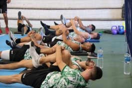 entrevistas (cosa que agradecemos por la disposición para que podamos difundir y visibilizar), los jugadores fueron a uno de los ángulos de la cancha, se les tomó el peso y la altura y tras cartón empezaron los ejercicios físicos, que irán incrementando a partir de mañana.