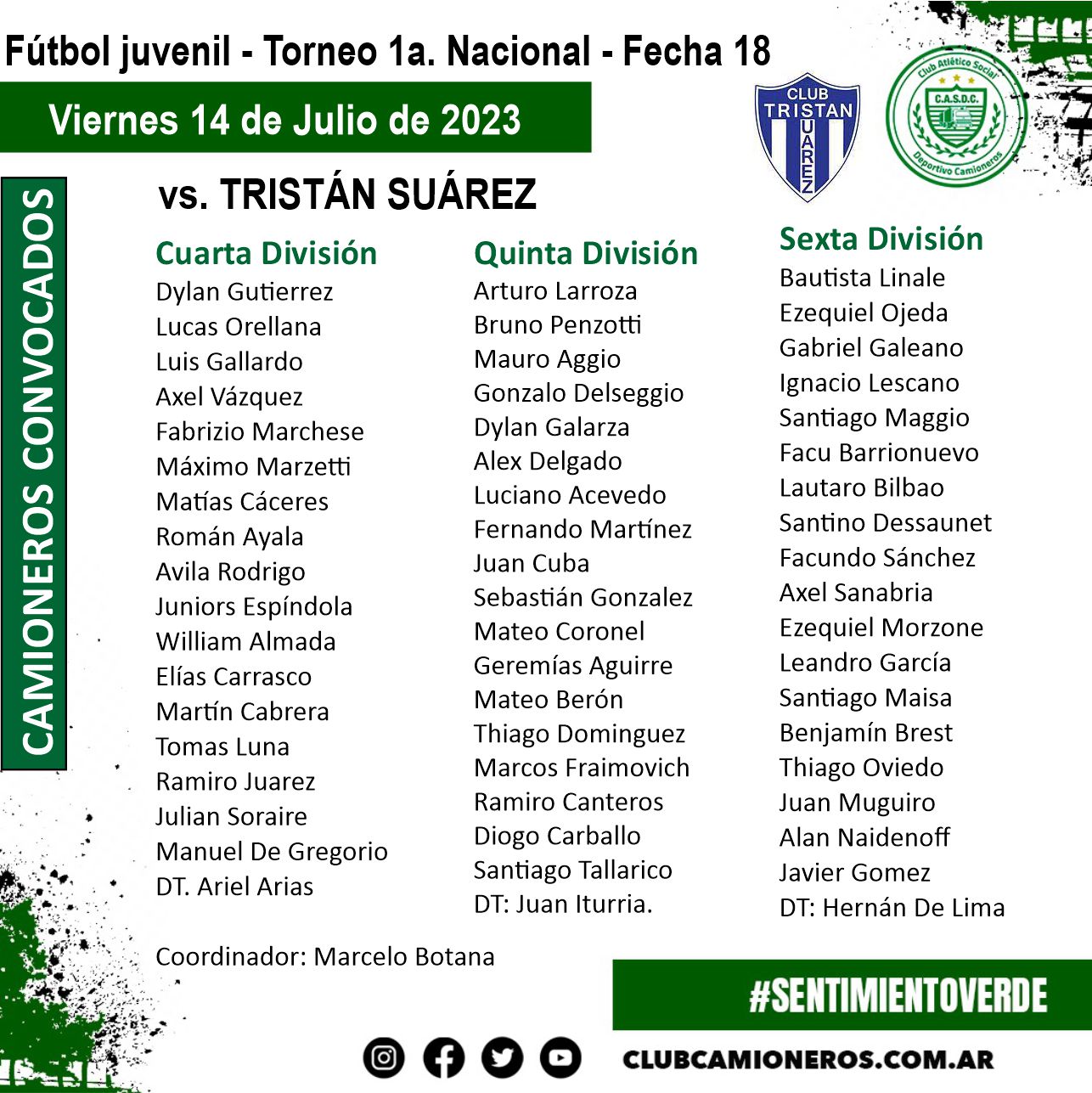 📍Estos son los convocados para viajar Rancho Taxco y representar a Camioneros en sus enfrentamientos con Tristán Suárez en Sexta, Quinta y Cuarta División (en ese orden) desde las 9 de la mañana.