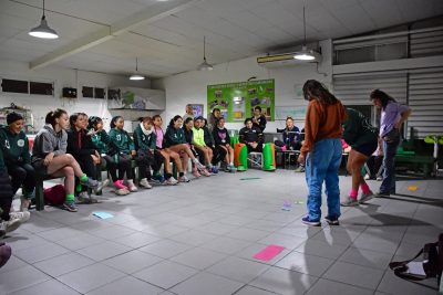 Las chicas pudieron compartir una merienda y realizar juegos que propuso la Profe encargada de dar estos talleres, Cynthia Junco, quien mediante el juego va desarrollando y tratando diferentes temáticas como por ejemplo, los roles de género, los cuidados preventivos y las situaciones de discriminación y violencia que muchas veces sufrimos.
