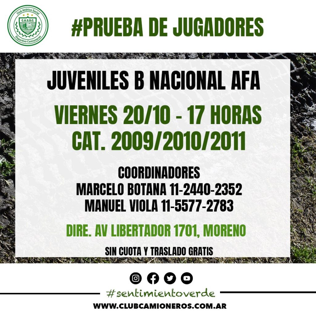 FUTBOL INFORMACIÓN ACERCA DE LAS PRUEBAS EN MORENO 10 octubre, 2023 En CAMIONEROS hay un lugar preparado para vos…