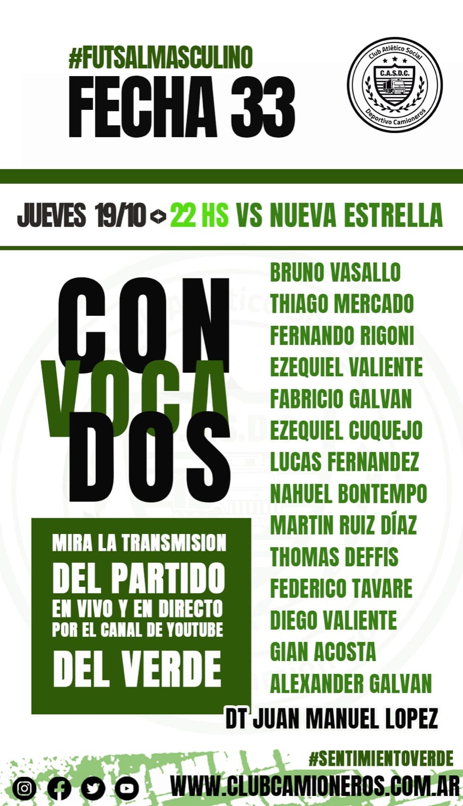 📍 Estos son los jugadores elegidos por el técnico Juan Manuel López para recibir a Nueva Estrella mañana en Alvear desde las 22 hs.