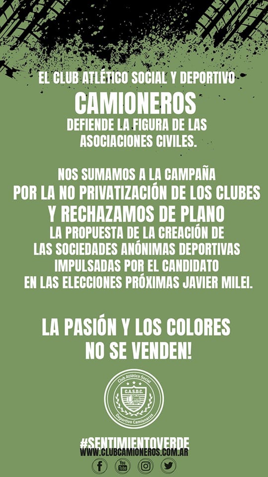 ACTUALIDAD COMUNICADO OFICIAL DEL CLUB CAMIONEROS 11 noviembre, 2023 El Club Atlético Social y Deportivo Camioneros informa: