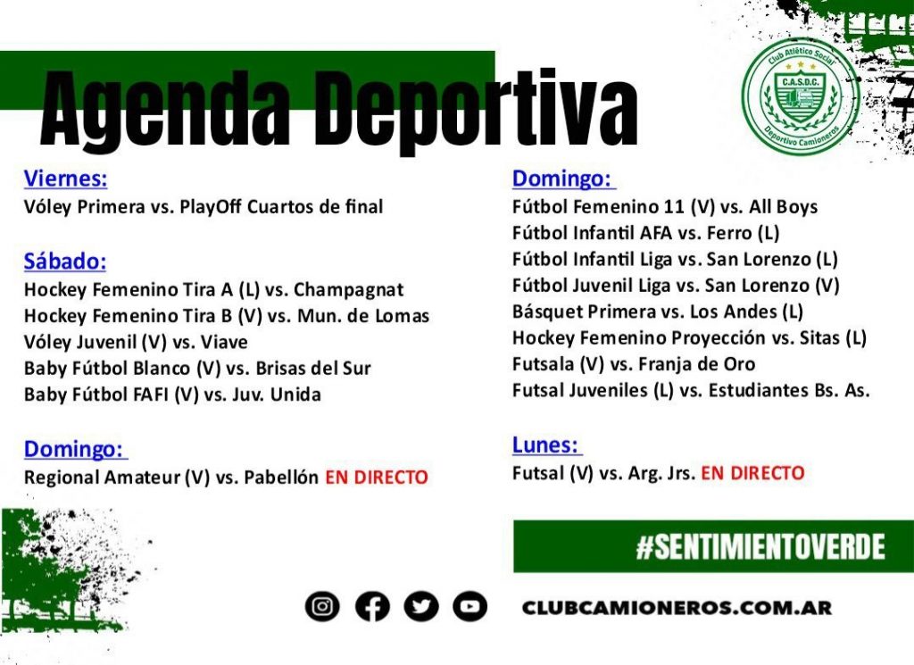 ACTUALIDAD LA AGENDA DEPORTIVA DEL CLUB CAMIONEROS 3 noviembre, 2023 El Camión se mueve… Vamos confirmando disciplinas para éste finde. S.E.Ú.O.