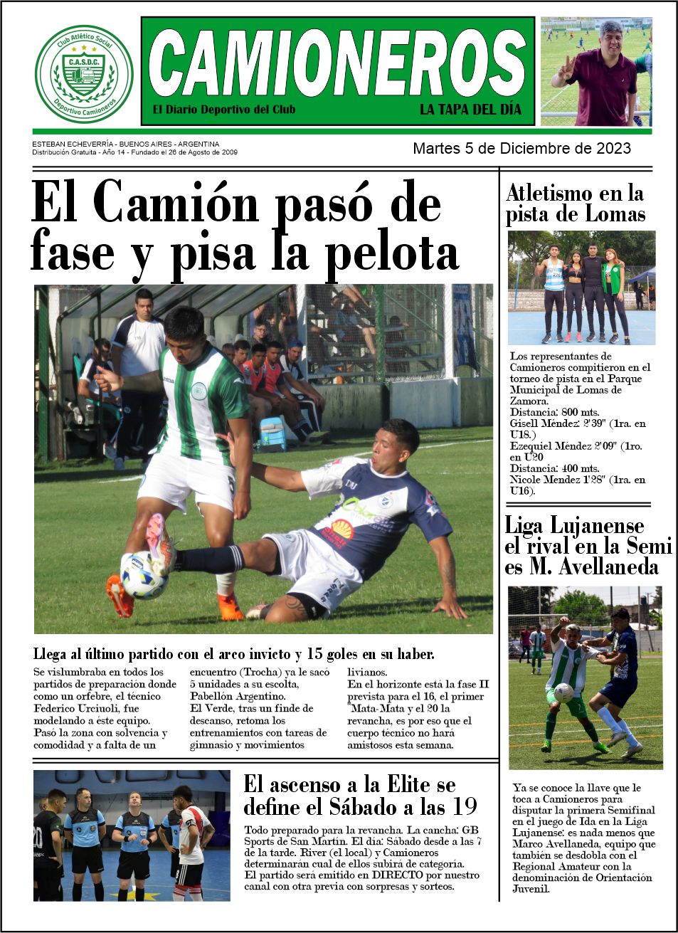CAMIONEROS CRECE: Además de la activación cada 30′ informando sobre todas las actividades del club, anexamos LA TAPA que incluye los títulos más importantes de todo aquello que vamos compilando.