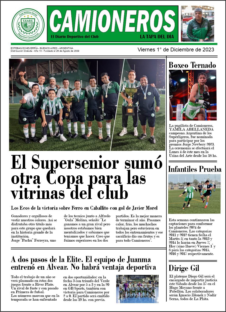 CAMIONEROS CRECE: Además de la activación cada 30′ informando sobre todas las actividades del club, anexamos LA TAPA que incluye los títulos más importantes de todo aquello que vamos compilando.