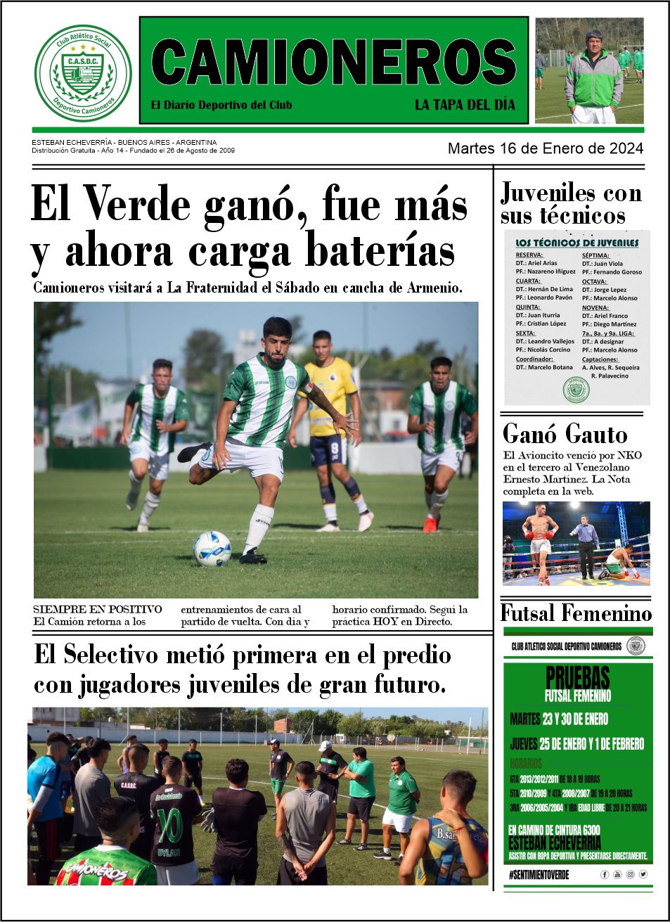 CAMIONEROS CRECE: Además de la activación cada 30′ informando sobre todas las actividades del club, sumamos el boletín de cancha, ahora anexamos LA TAPA que incluye los títulos más importantes de todo aquello que vamos compilando.