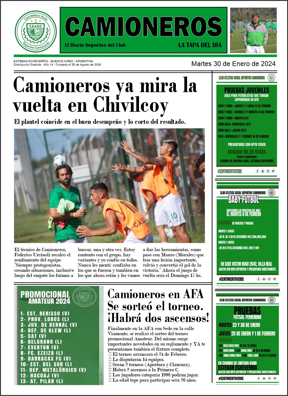 CAMIONEROS CRECE: Además de la activación cada 30′ informando sobre todas las actividades del club, sumamos el boletín de cancha, ahora anexamos LA TAPA que incluye los títulos más importantes de todo aquello que vamos compilando.