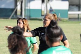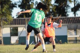 Luego de las activaciones se pasó a la acción con pelota y trabajos en grupos, de pases con pierna derecha e izquierda; en un variación de 4vs4 entre mix de jugadoras con bloques de 5 minutos.
