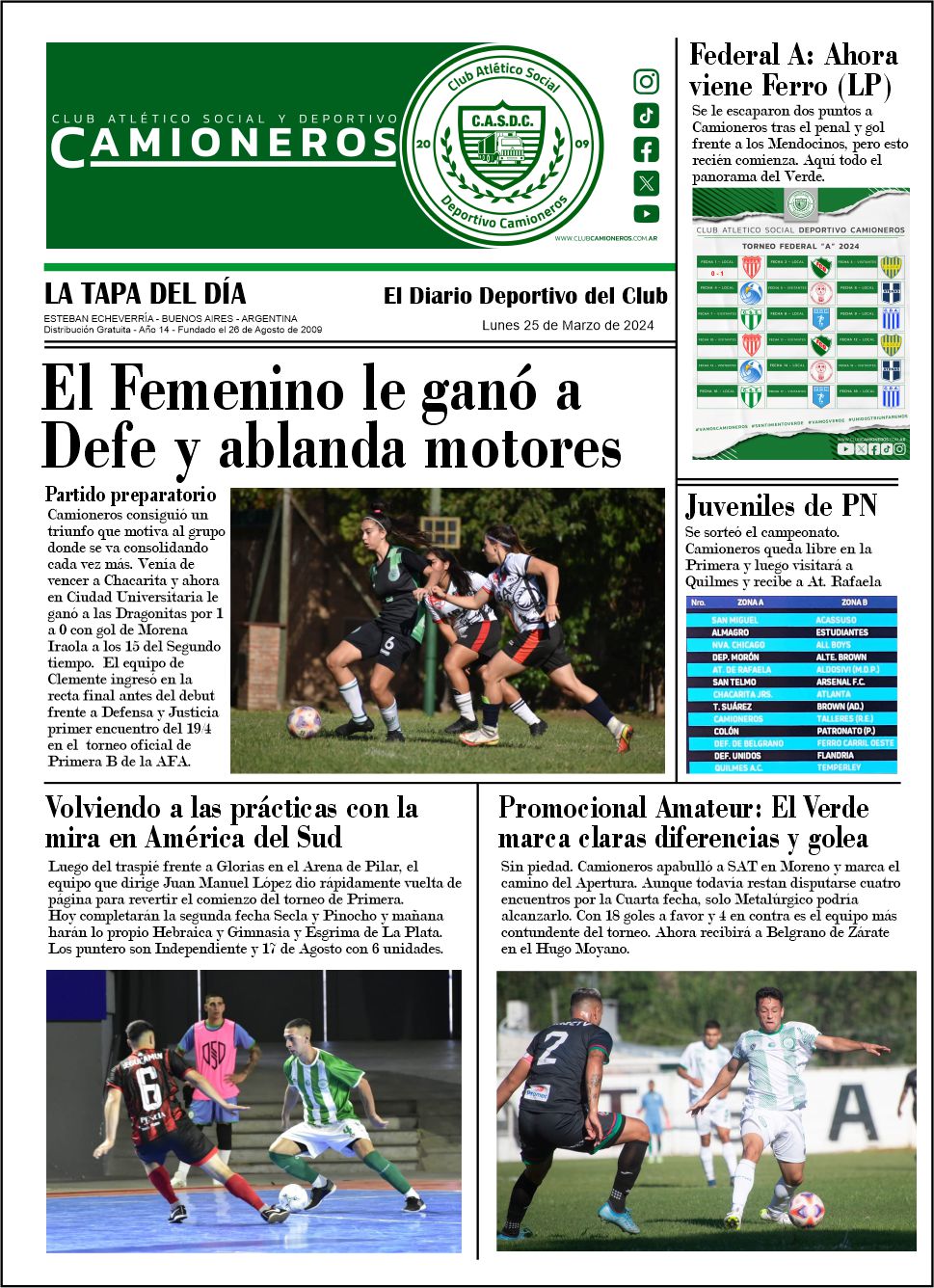 CAMIONEROS CRECE: Además de la activación cada 30′ informando sobre todas las actividades del club, sumamos el boletín de cancha, ahora anexamos LA TAPA que incluye los títulos más importantes de todo aquello que vamos compilando.