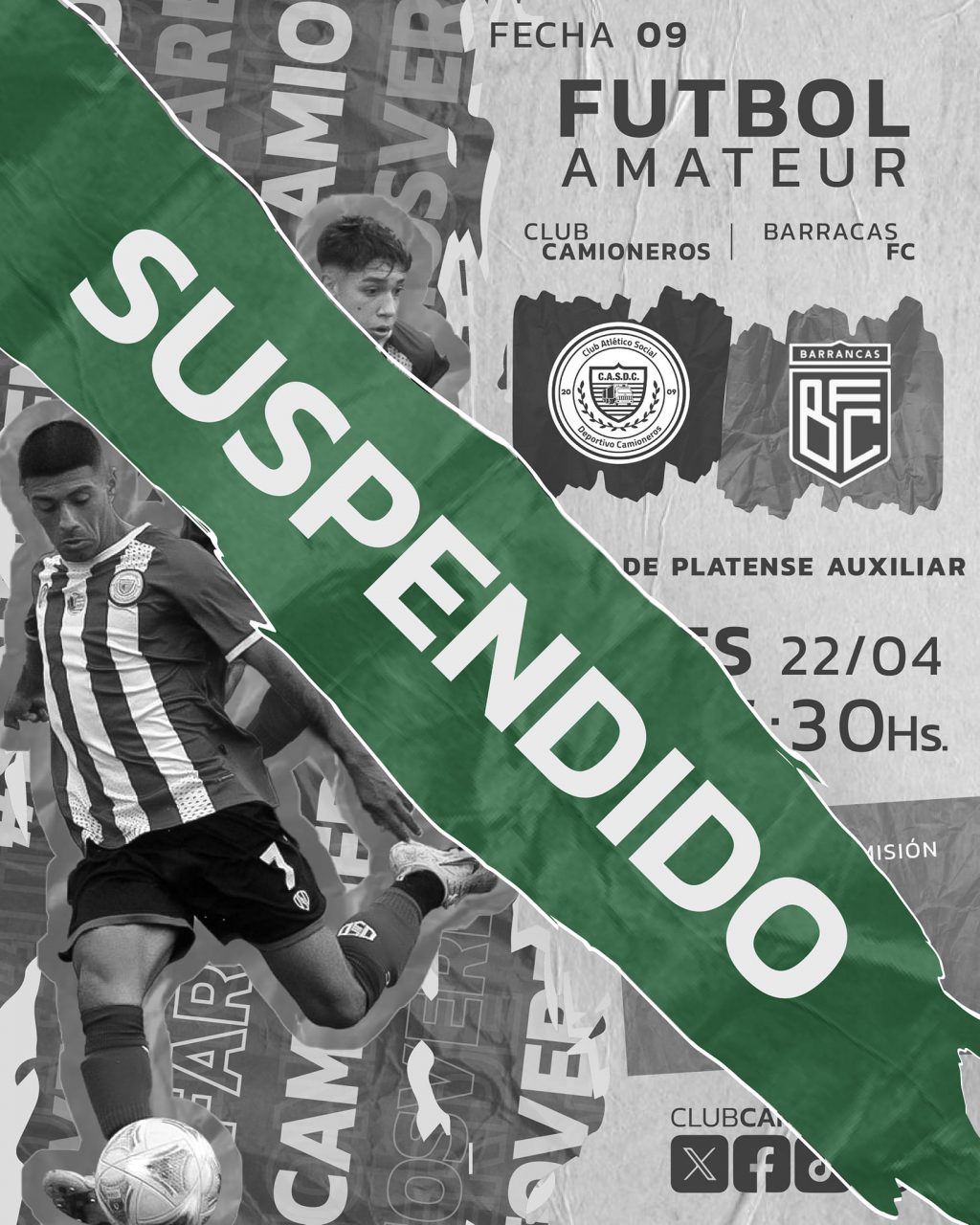 ☔️ El partido entre Barrancas FC. y Camioneros, previsto para esta tarde a partir de las 15,30 hs. el la auxiliar de Platense, fue SUSPENDIDO.