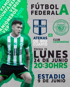 Esta noche en el estadio 9 de Julio de Río Cuarto, CAMIONEROS, visitará a Atenas en una nueva jornada de del Federal A cerrando la fecha 15. Un partido de vital importancia para ambos: para el local que viene de caer 1 a 0 frente a los mendocinos de San Martín, crecer en las posiciones de clasificación acercándose a su rival de turno y para el Verde la chance de seguir «pisándole» los talones al escolta Ciudad Bolívar que goleó en la tarde del Sábado 4 a 0 a Ferro en Pico. Por todo ello y por la gran levantada de Camioneros en los últimos 10 partidos es que el juego e, a todas luces espectacular.