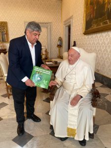 Nuestra institución con casi 3000 deportistas, comedores y asistencia permanente fueron tópicos que el Papa escuchó hace instantes.