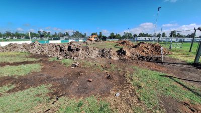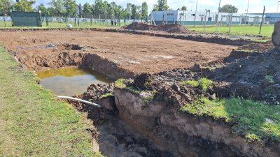 «Como el suelo en ésta zona es muy inestable es por ello que se le hizo ese tratamiento con piedra y tosca, lamentablemente y según los que conocen la zona, este era un lugar muy inundable, de bañados y bajos, entonces el piso no es estable, por eso la estabilidad se la tenemos que dar nosotros con la tosca para que el piso no hunda. Acá a 55 cm. ya hay agua y eso nunca nos pasó. Hicimos la tribuna de Talleres, Midland, Chacarita y no hubo que hacer este trabajo, ahí las napas estaban a 1,50 mts.»
