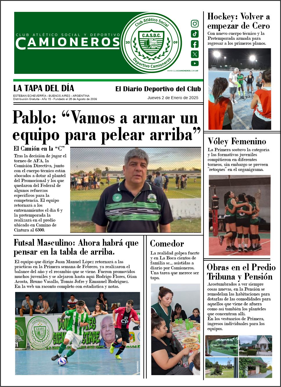 CAMIONEROS CRECE: Además de la activación cada 30′ informando sobre todas las actividades del club, sumamos el boletín de cancha, ahora anexamos LA TAPA que incluye los títulos más importantes de todo aquello que vamos compilando.