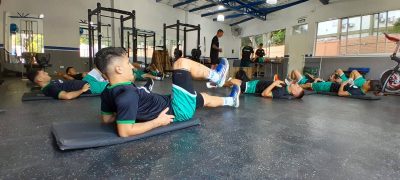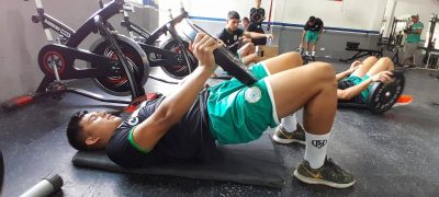 La jornada inició con trabajos físicos en el gimnasio de la mano de Matías Quiroga, donde se realizaron mediciones de salto para evaluar el rendimiento de cada jugador, musculacion con pesas y bicicleta. Además, el nutricionista Federico Beylen recopiló datos individuales para ajustar los planes de alimentación y preparación.