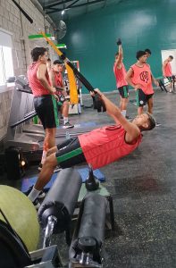 Ejercicios de coordinación, fuerza, explosividad y concentración fueron parte del circuito inicial en el que en grupos de tres jugadores fueron pasando en cada estación hasta completar el circuito y continuar con la parte futbolística de campo..