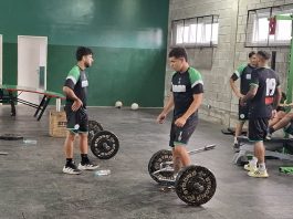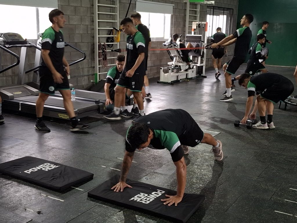 El plantel profesional realizo trabajos de fuerza en el gimnasio en primer turno para los jugadores de campo y en paralelo los arqueros realizaron trabajos de campo,