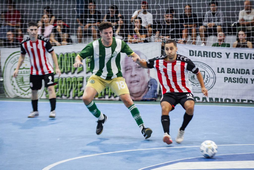 La lluvia amenazó durante todo el día con interrumpir el partido, pero las puertas del Club Alvear se abrieron sin ningún problema para que Camioneros debuté como local en el torneo de Primera A de Futsal. En un encuentro ida y vuelta, De candia empezó a mover la balanza hacia la visita, cuando rompió el cero. Luego, se le sumaron los goles de Valdebenito y Pedrazzini para un final de primer tiempo con el 3 a 0 parcial.